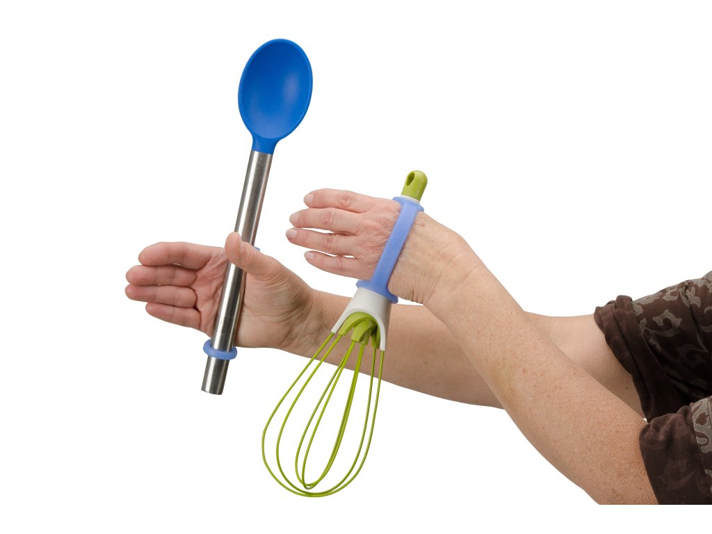 - Děti: Pomáhá dětem samostatně držet lžíci, vidličku, pastelku, tužku, zubní kartáček nebo hračky jako panenky či hudební nástroje. To podporuje jejich nezávislost a rozvoj motorických dovedností.